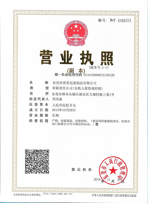 公司名称: | 东莞市奕星包装制品有限公司 (未在本网认证) |
